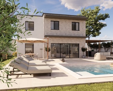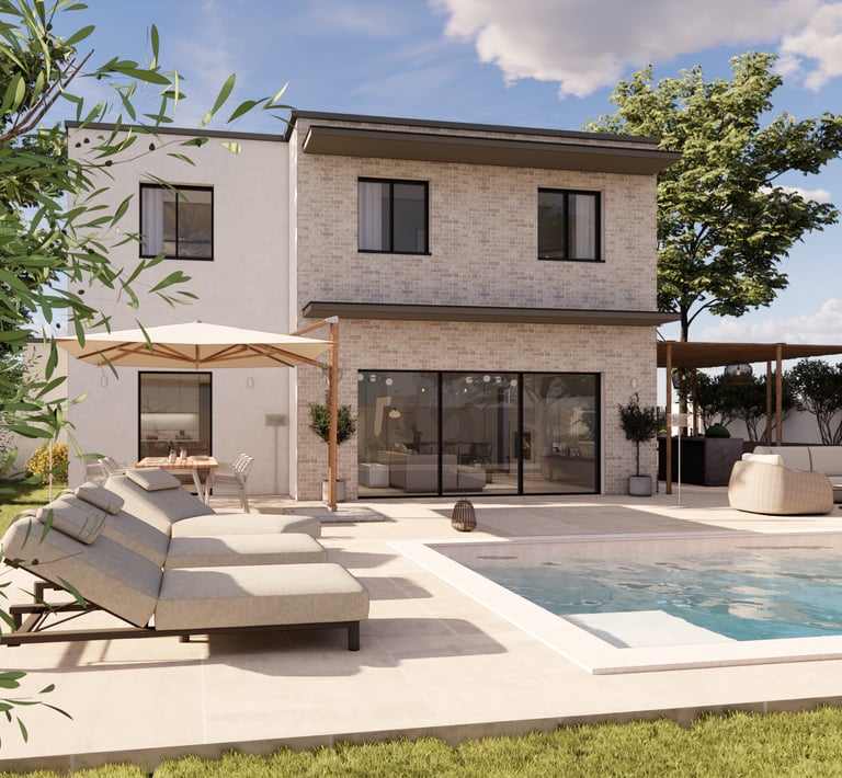Nous utilisons des meubles de marques renommées comme La Redoute dans nos visuels 3D, pour l'intérieur et l'extérieur. Ces éléments enrichissent nos créations, offrant une perspective réaliste pour vos projets d'aménagement.