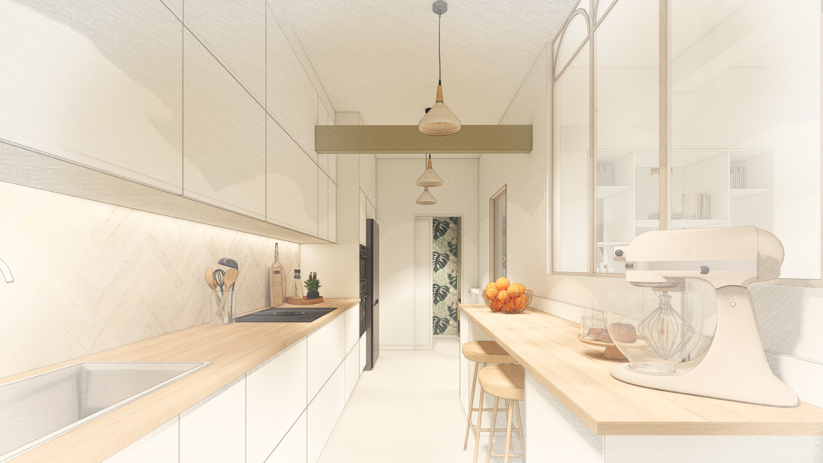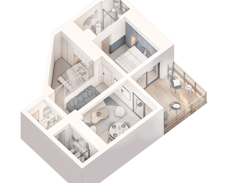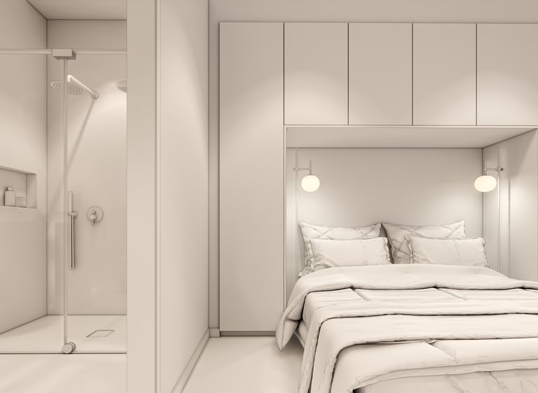 Un modèle 3D simplifié est utilisé pour évaluer les proportions et l'agencement d'un projet, avant l'ajout des détails et des finitions.