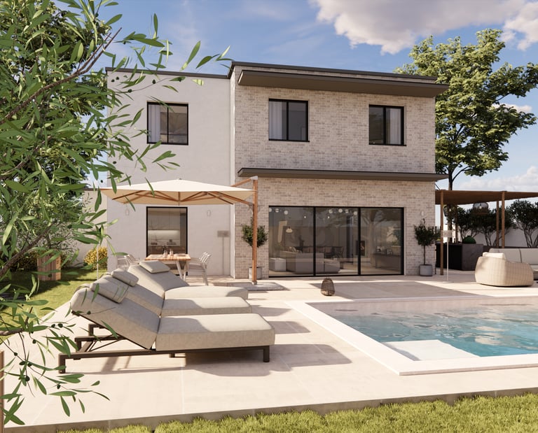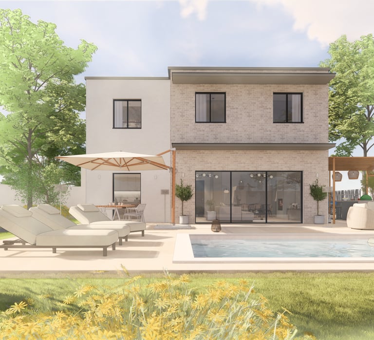Nous utilisons des meubles de marques renommées comme La Redoute dans nos visuels 3D, pour l'intérieur et l'extérieur. Ces éléments enrichissent nos créations, offrant une perspective réaliste pour vos projets d'aménagement.